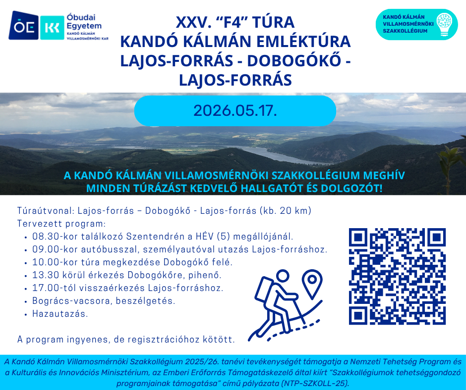 A KANDÓ KÁLMÁN VILLAMOSMÉRNÖKI SZAKKOLLÉGIUM az Óbudai Egyetem rektora által 1000000 Ft támogatásban részesült a 2024-25/II félévre.