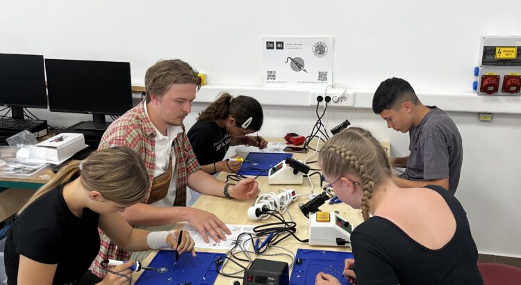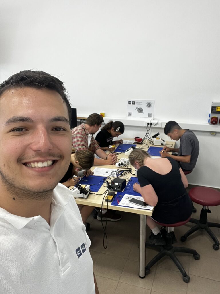 Tegnap (2025.06.27.) a Váci Szakképzési Centrum Pályaorientációs táborában jártunk. A résztvevő gyerekek a szakkollégium által biztosított eszközökkel és lelkes tagjaink segítségével egy villogó, kitűz elektronikát készíthettek el.