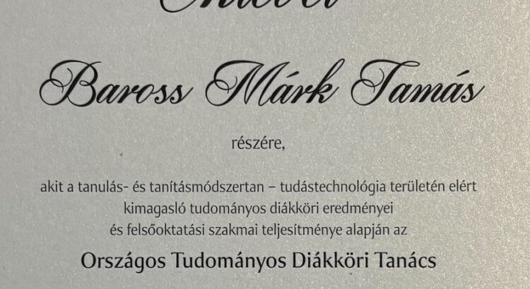 Büszkén jelentjük be, hogy Márk Baross, a Kandó Kálmán Villamosmérnöki Szakkollégium aktív tagja, elnyerte a rangos Pro Scientia Aranyérmet! Ez az elismerés a fiatal kutatók kimagasló tudományos teljesítményének legfőbb hazai díja, amely kiemelkedő tehetségét és munkáját igazolja.