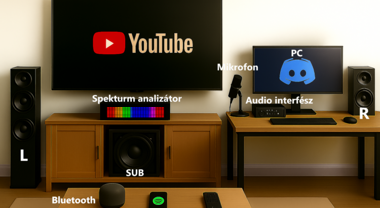 “Az Excellence Óbuda ösztöndíjprogram keretében egy DSP-alapú, 2.1 csatornás audiointerfész és vizuális visszacsatoló rendszer megtervezése és prototípus-szintű igazolása volt a cél. A koncepció egy többbemenetes eszköz: USB / AUX / Bluetooth / SPDIF forrásokat fogad, majd digitálisan feldolgozva bal–jobb–sub kimenetre adja ki.A rendszer központja a DSP, ahol megtörténik a szűrés, keverés, hangerő/balansz kezelés, valamint egy szoftveres keresztváltó (kb. 100 Hz környékén) a sub és a sztereó tartomány szétválasztására. Ehhez társul a „látvány” része: a kimeneti jel valós idejű spektrumanalízise, amit címezhető RGB LED jelenít meg, így a zene frekvenciaeloszlása vizuálisan is követhető.